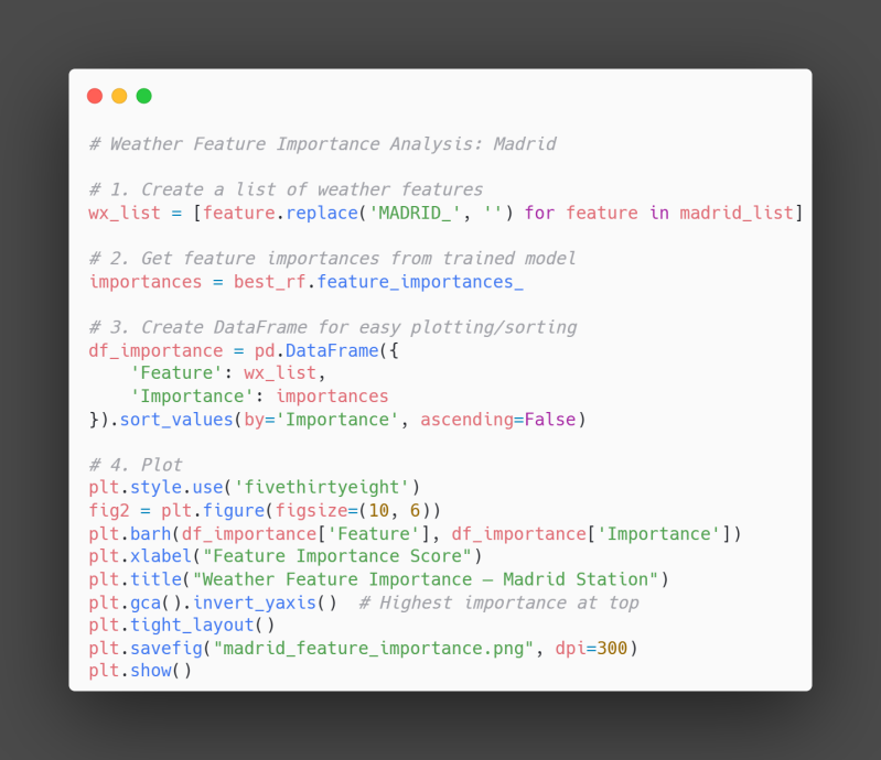 Code 1. Generating the feature importance chart for the Madrid Random Forest model (Figure 1).