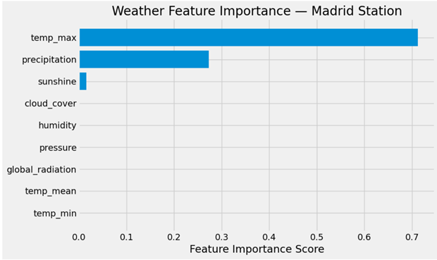 Figure 1. Feature importance ranking from the Random Forest model (Madrid dataset).