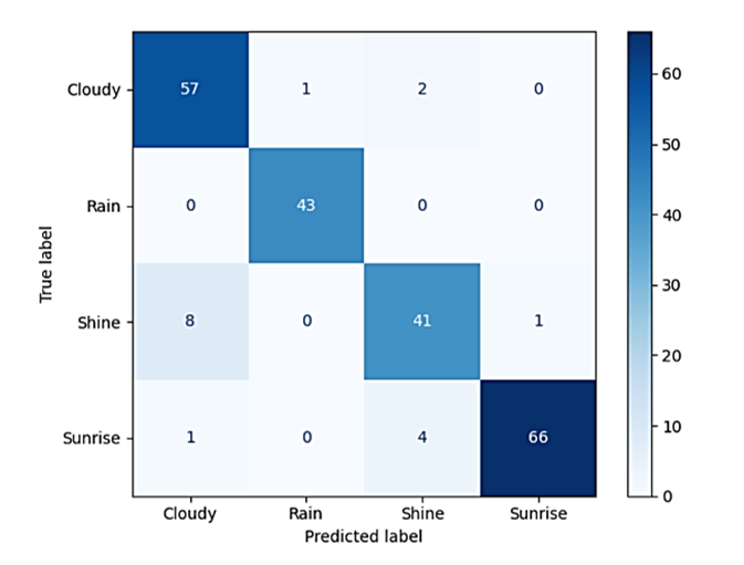 - Extended CNN to image classification (Cloudy, Rainy, Sunny, Sunrise).